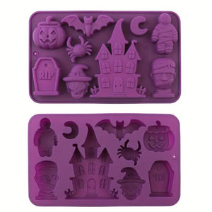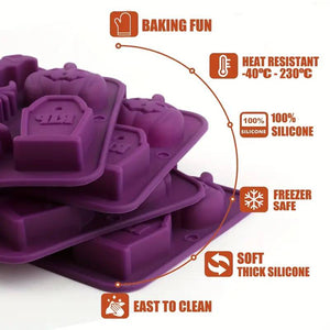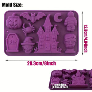 Unlock the spirit of the season with our Haunted Manor Silicone Mold — a delightfully dark canvas for your soap, candy, or wax creations. Carved with silhouettes of haunted castles, pumpkins, witch hats, bats, ghosts, and graveyard scenes, this mold adds drama and charm to every batch.